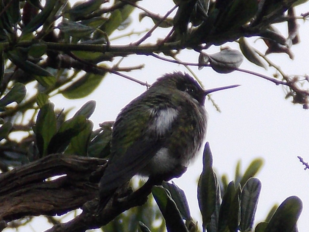 This year the weather has been milder, but not without its challenges. For the past week, a male Anna's has spent long periods of time perched on the largest feeder in my yard. I've never seen this behavior before and at first I thought he might be injured or sick, but he seems fine and now I believe he's just being territorial! I've started calling him Tuff because he often displays white tufts of underfeathers near both wings, and because he has happily turned out to be tougher than I thought!